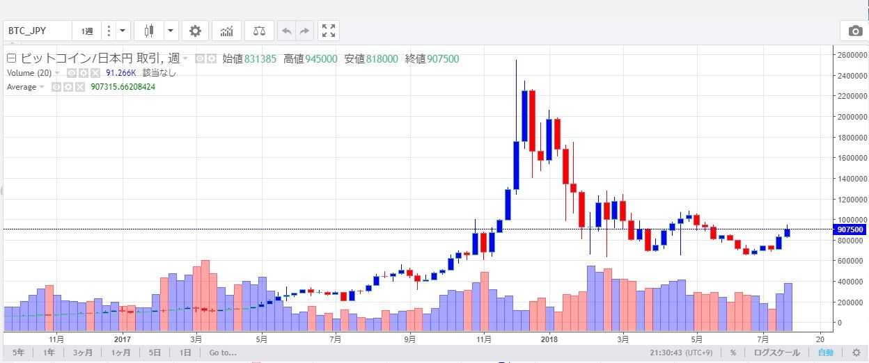 ビットコインは2017年7月に1BTCおよそ30万円。