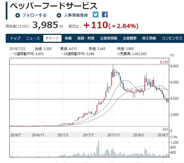 これからもいきなり! ステーキ(ペッパーフードサービス)の躍進は続くでしょうから、下落基調のときにこそ買いかもしれません。