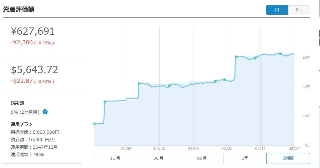 初期費用を10万円でスタートし、その後の自動積立は毎月1万円からという仕組み。