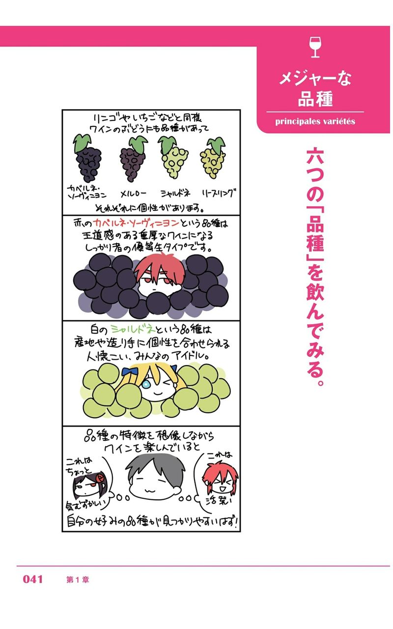 実はこの本の最大のおすすめポイントは、ブドウの品種がキャラクター化されていることです 。しかもそれぞれ品種の特徴をきちんとわかったうえでキャラクター化しているのですごく記憶に残りやすいのです。