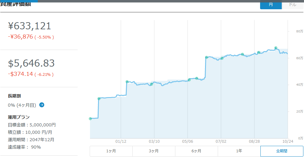 まだまだ私はウェルスナビで積立を始めて1年くらい。