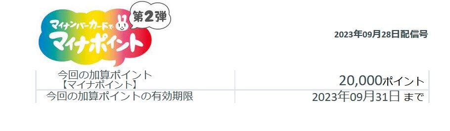 今回の加算ポイントの有効期限は、2023年9月31日まで。