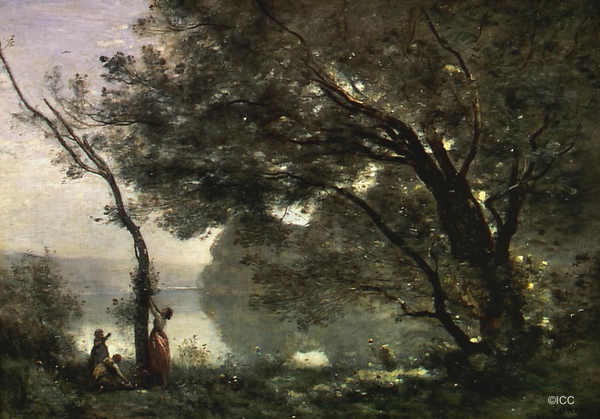 眼の前の湖の神秘的な景色と、自分の頭の中にあるコローの空想上の風景画の記憶が重なり合い、自分は今目を覚ましているのか夢を見ているのかいまいち分からなくなってきます。