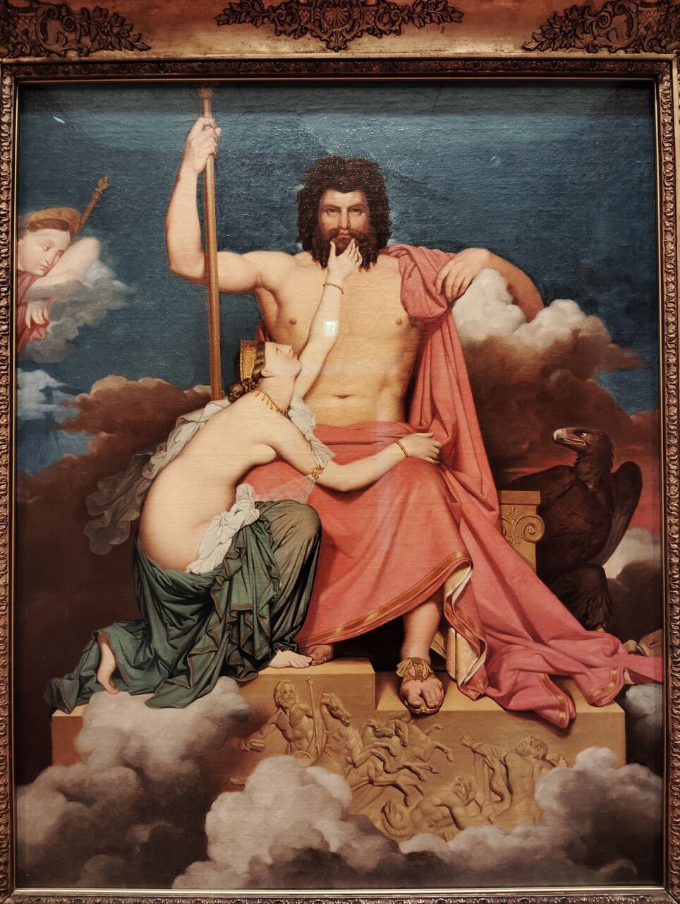 この構図ってどこかで見たことあるような。このタッチも見覚えがある・・・、そう、アングルでした。え、あのアングルがここにもあるの!? この作品は「ユピテルとテティス」。エクス=アン=プロヴァンスにあるグラネ美術館の代表的収蔵品ですが、こちらは同題、同一構図の小品のようです。小品といっても家の窓くらいあるサイズです。うへっ、恐れ入った。