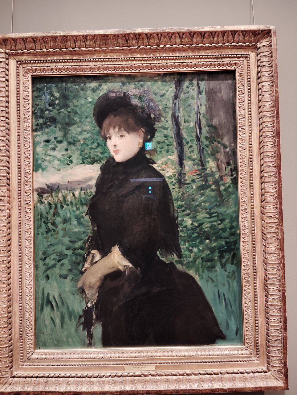 こちらはマネの「散歩(ガンビー夫人)」。マネまであるのか。黒い服を着用したこの女性はオルセー美術館に収蔵されている「すみれの花束をつけたベルト・モリゾ」を連想させます。背景が明るいだけに、この黒い服はいっそう際立ちます。